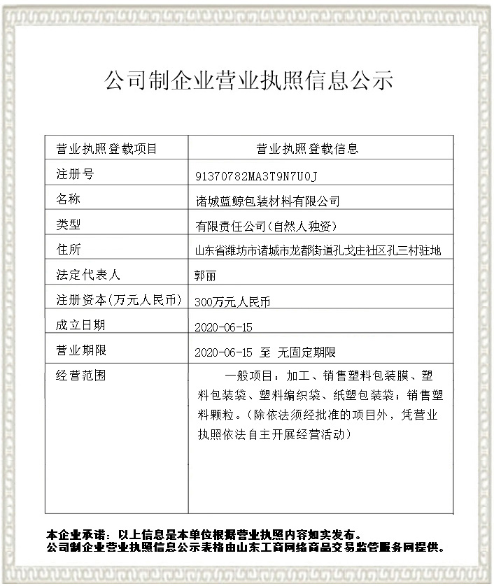 山東諸城藍(lán)鯨包裝材料有限公司,是諸城市一家專(zhuān)業(yè)生產(chǎn)無(wú)紡布手提袋、編織袋的包裝企業(yè) ,現(xiàn)有圓織機(jī),拉絲機(jī),涂膜機(jī),印刷機(jī),復(fù)合機(jī),折邊機(jī),裁切機(jī),封底機(jī),縫紉機(jī),無(wú)紡布熔噴機(jī)、無(wú)紡布一體制袋機(jī)等各類(lèi)設(shè)備幾十多套,專(zhuān)業(yè)生產(chǎn)無(wú)紡布手提袋、無(wú)紡布保溫袋、各種彩印編織袋等,產(chǎn)品廣泛用于各行各業(yè)的外包裝......